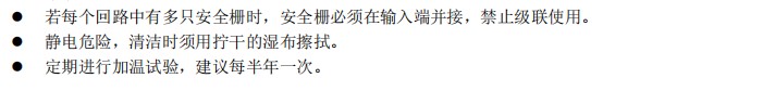 ?•使用時必須配接安全柵,每只安全柵后所帶防爆型感溫探測器《10只,每個報警回路使用安全柵?的數(shù)量不得超過6只。