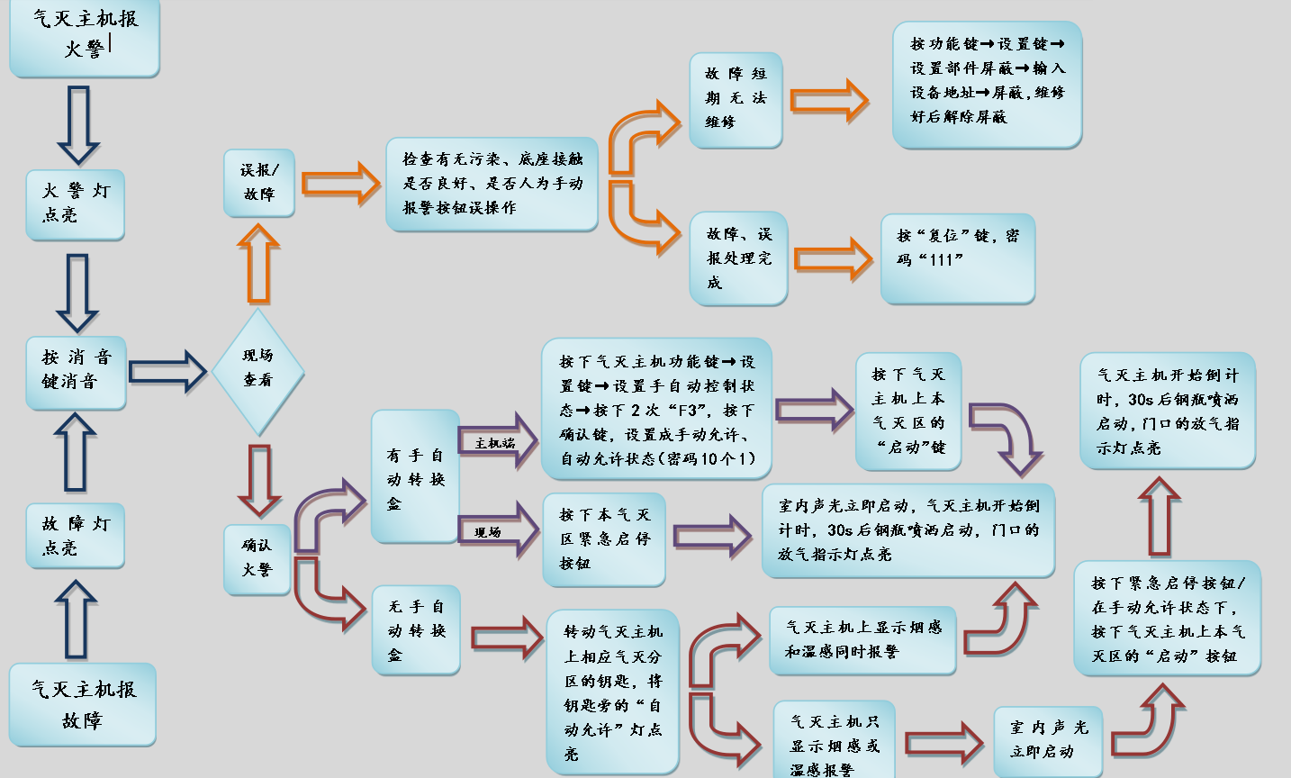 轉(zhuǎn)動(dòng)氣滅主機(jī)上相應(yīng)氣滅分區(qū)的鑰匙,將鑰匙旁的“自動(dòng)允許”燈點(diǎn)亮,